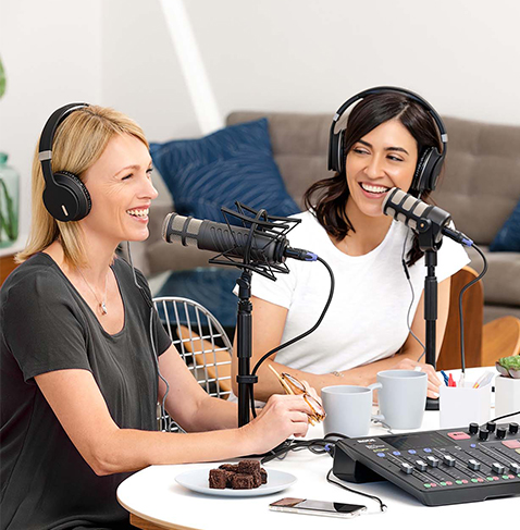If you are in the market for a ready-to-go, two-person podcast setup, look no further than this bundle. While also featuring the RØDECaster Pro, this bundle includes two PodMics, cost-effective, stylish, end-address dynamic XLR microphones specifically tuned for speech and broadcast. Paired with two studio-quality PSA1 boom arms offering full 360 degree rotation and a horizontal reach of 820mm, suitable for desk mounting. Two Sony MDR7506 professional studio over-ear headphones can plug directly into the RØDECaster Pro, allowing for real-time audio monitoring. The bundle is rounded out with two Maximum 3m XLR cables and a SanDisk 64GB Micro SD card, ensuring all the gear can be used together with ease.